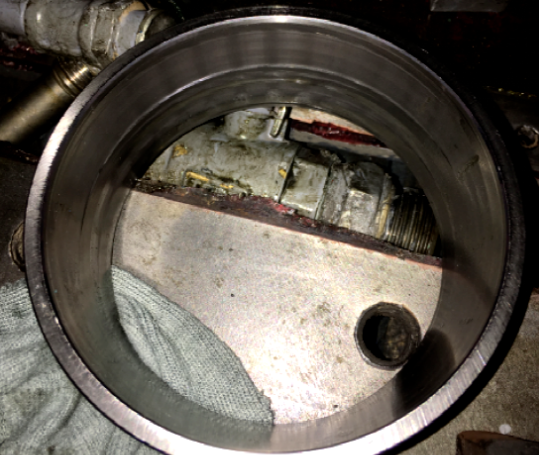 返厂后检查,发现高速轴轴向攒动量6mm左右。联轴器凹底部有研磨台阶。