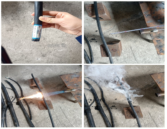 由于试验场地及试验设备有限,仅采用电缆阻燃试验水平燃烧的方法进行,无法确定阻燃性能实际等级,试验数据仅代表试验样本的大概性能。